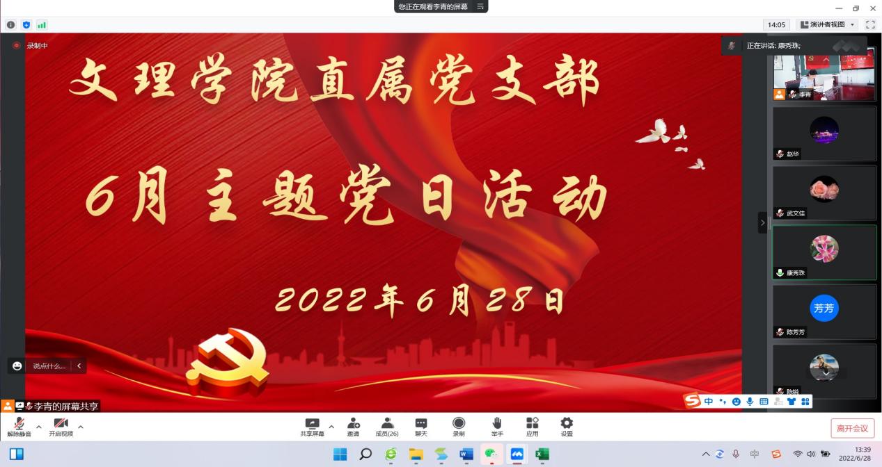 在中国共产党成立101周年、“七一”党的生日到来之际,直属党支部于6月28日组织新老党员开展“迎七一云宣誓”主题党日活动。