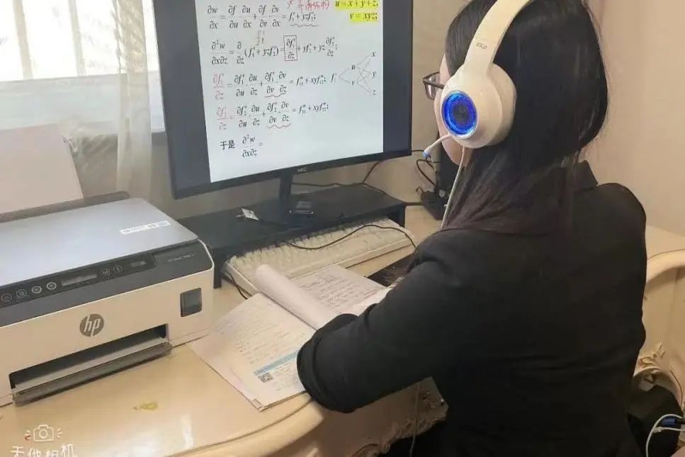 这门课是为了提高数学能力并为考研的学生提高数学基础的,因此课程有一定的难度。武老师一直通过腾讯会议给我们直播上课,老师在直播时也会像在课堂上一样与我们时刻互动,如果有任何不懂,可以随时在线上询问老师。而且线上上课,让做笔记这件事方便了很多,因为云端有课程记录,所以有任何遗忘的知识点,都可以反复观看课程视频。武老师一直关心我们对知识的掌握情况,积极帮助我们答疑解惑,这也激励着我在学习时要脚踏实地,坚持不懈,不断奋斗,勇攀高峰。(《微积分应用与拓展》课程软件2011班 李萌)