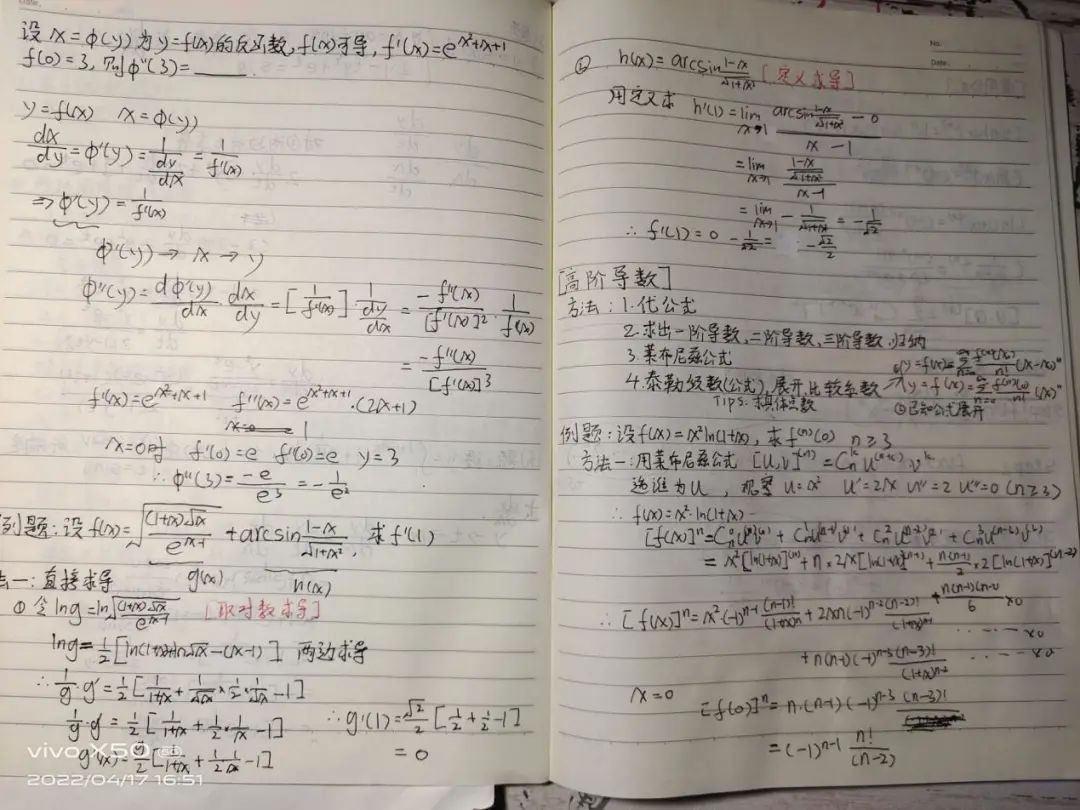 因为疫情的到来,线下学习的脚步暂时放下,但学习的步伐却永不停歇。在线上学习《微积分应用与拓展》课程的过程中,武老师教大家首先要克服因为疫情导致的心理浮躁和不安,踏下心来,养成跟着老师一起做题,记笔记的习惯。武老师经常说,眼过千遍不如手过一遍,理清知识结构网络图(极限、连续、导数、不定积分),然后根据知识结构网络图去发散、联想基础概念和基本定理和每个知识点的应用计算题,对每节的内容有个清晰的思路,认真学习课上的习题,跟着武老师的讲解,从易到难,多种的解题方法,让我们一步一步提高思维的灵活性。