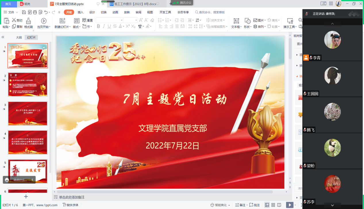 7月22日上午,pp电子游戏官网直属党支部组织开展主题党日活动,主要深入学习贯彻习近平总书记在庆祝香港回归祖国25周年大会暨香港特别行政区第六届政府就职典礼上的重要讲话精神。