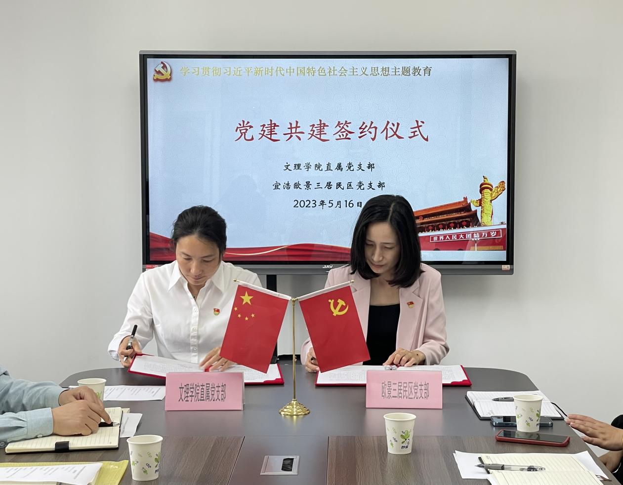 会上,pp电子游戏官网直属党支部还与宜浩欧景三居民区党支部进行了党建共建签约,双方将本着“资源共享、党建共建、双向服务”的工作理念,以高质量党建引领高质量发展,推动产教城高效共建。