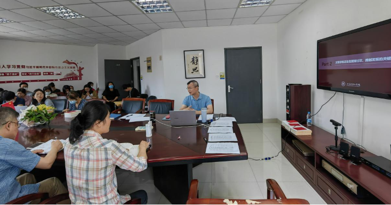 按照学校主题教育工作要求,5月26日中午,pp电子游戏官网直属党支部书记康秀珠以“坚持以人民为中心,自觉担负新时代育人使命”为主题作专题党课,全院教师参加。