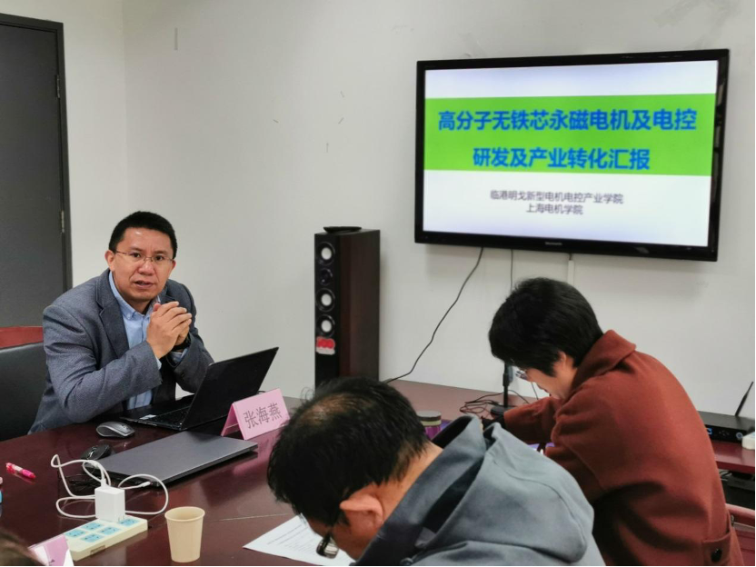 第三党支部教师党员张海燕作为无铁芯电机研发的团队代表介绍了当前高分子无铁芯永磁电机及电控研发及产业转化的情况,并希望在理论支撑控制性能提升方面不断加强人才队伍建设。