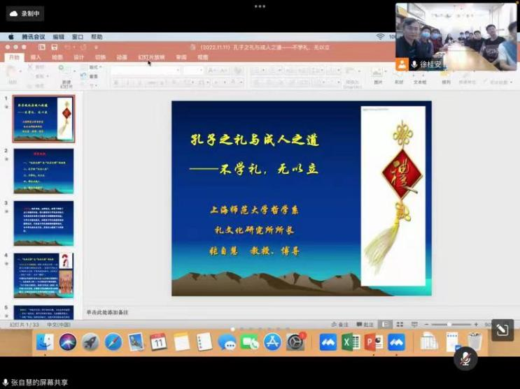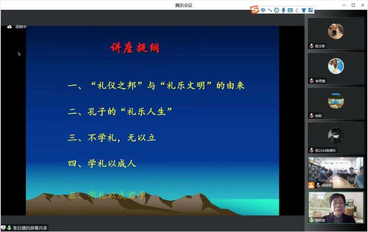 张自慧以“‘礼仪之邦’与‘礼乐文明’的由来”、“孔子的‘礼乐人生’”、“不学礼,无以立”、“学礼以成人”、“学礼以成君子”五个部分,循序渐进地讲解了“礼”的传统发展和现实意义。由中西文化之别讲到中华文明传承的韧性,根植于我们所遵奉和倡导的儒家文化中的“仁礼”之道,即是中华民族力量得以凝聚和共同认知的源泉。