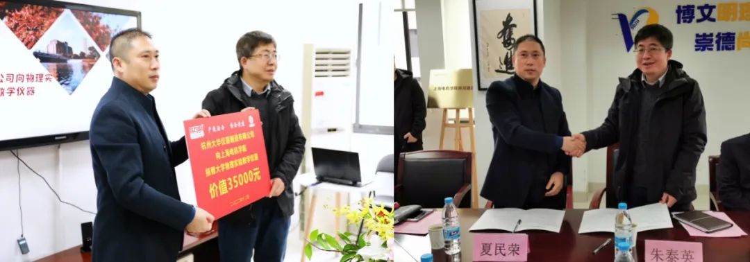 杭州大华仪器制造有限公司在会上向我校大学物理实验室捐赠了价值3.5万元的教学仪器,并与pp电子游戏官网就进一步推进实验教学改革合作达成了意向。