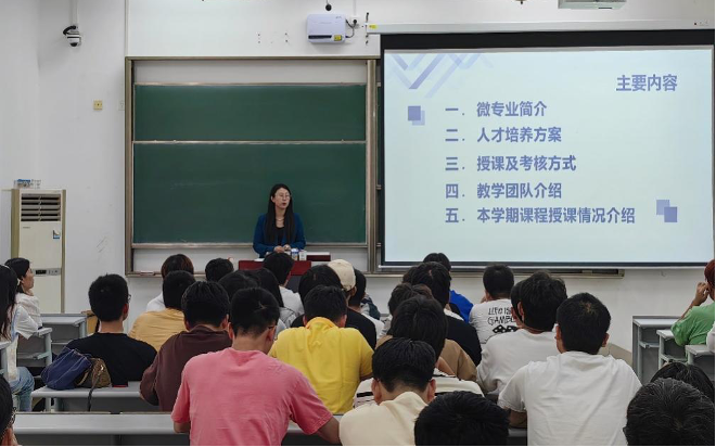 王丽向微专业学生详细介绍了本专业“小学分、精课程、高聚焦、跨学科”的专业建设特色,并对本专业的培养方案、学制学分、课程体系、教师团队、毕业要求及发展愿景进行了详细解读。