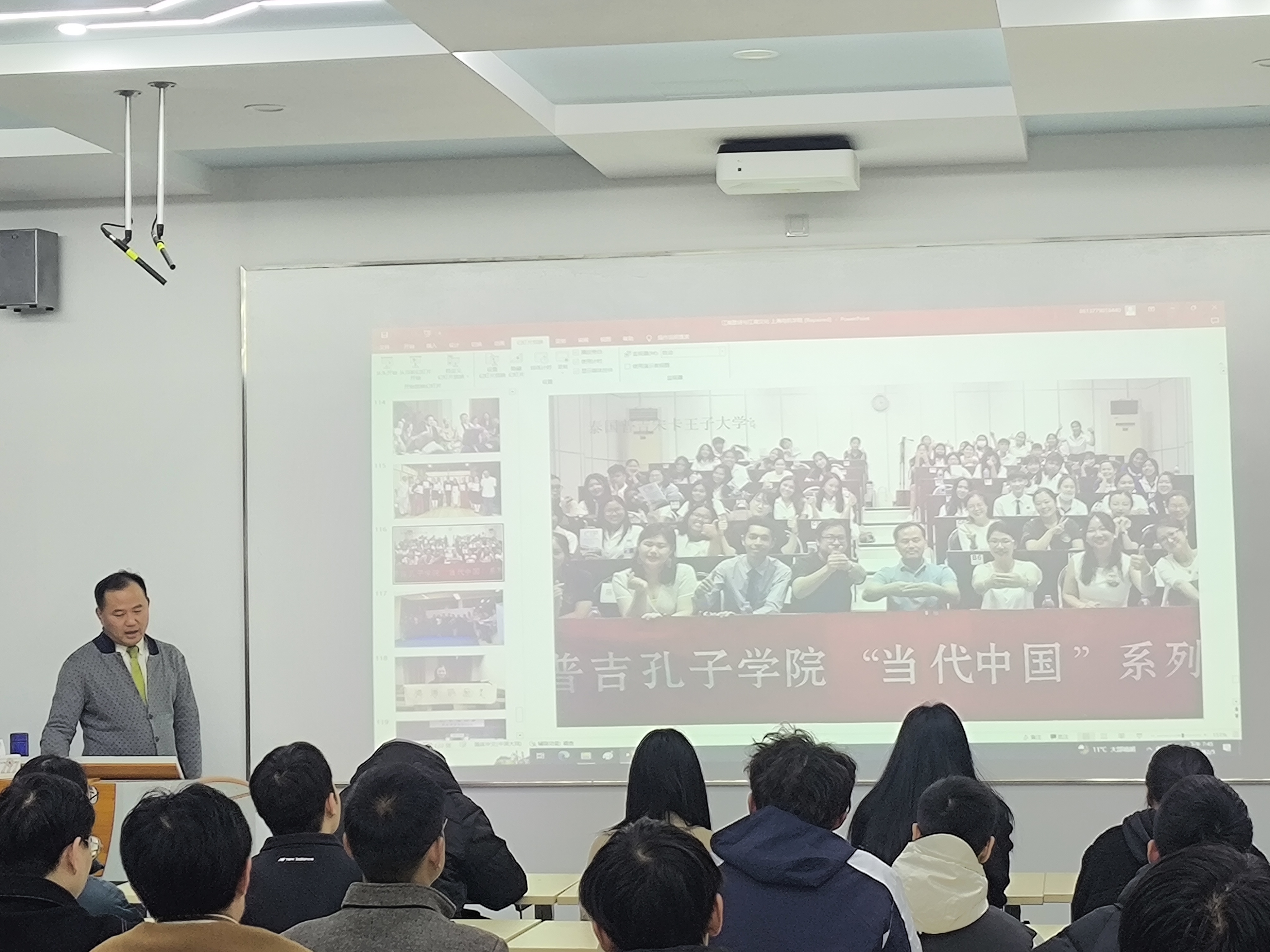 讲座最后,杨赛老师结合在东南亚、欧洲、北美洲等地区的歌诗实践,向同学们展示了中国文化的传播与影响,中国文化的美与浪漫早已走入世界各地的角角落落,讲述着中国故事、传播着中国声音。(供稿:pp电子游戏官网 王圆圆)