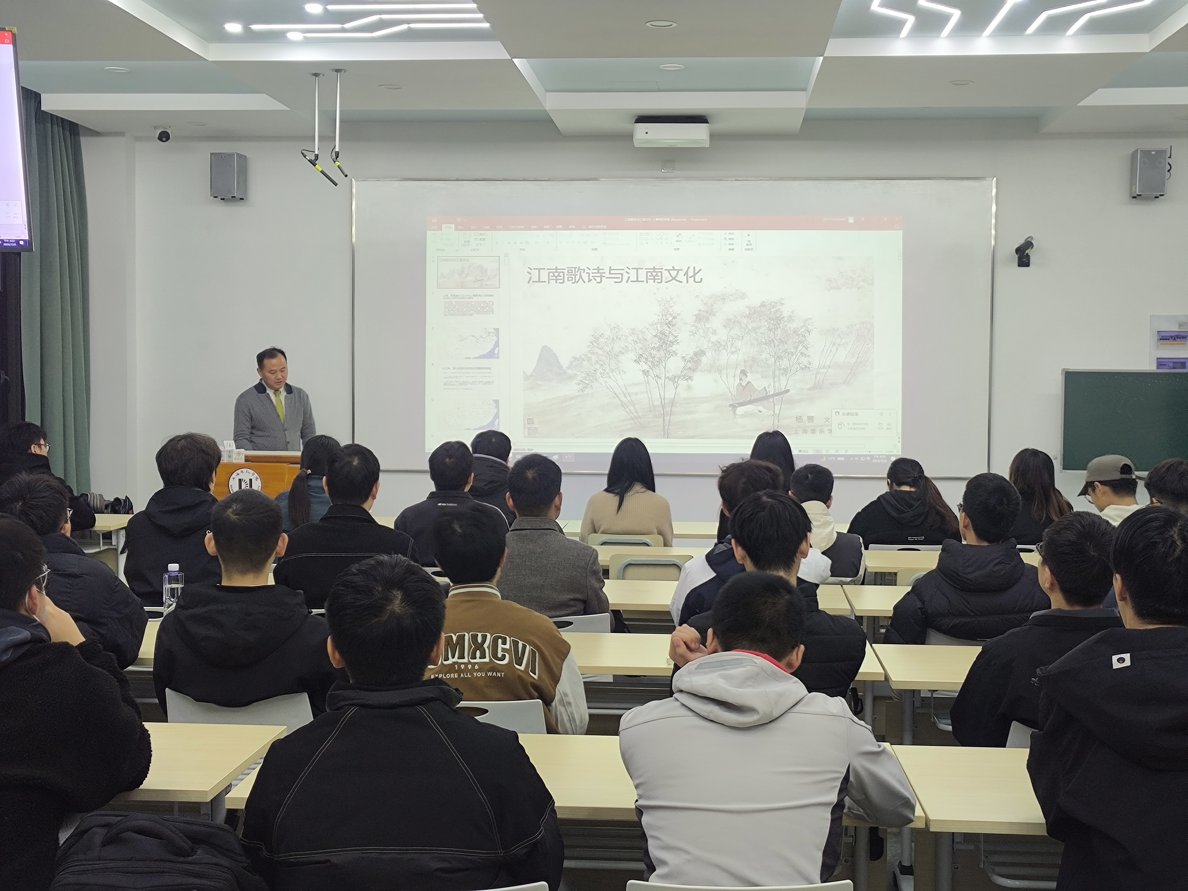 “月河通识大讲堂”第六场讲座于12月5日开讲,邀请上海音乐学院研究员杨赛作《江南歌诗与江南文化》专题讲座。pp电子游戏官网直属党支部书记董雪静教授出席,近百位师生参加,讲座由pp电子游戏官网副院长吉文斌教授主持。讲座梳理了江南歌诗的发展与传播史脉,带领师生们深入了解江南文化与美学精神,展现中国式审美的高尚情趣。