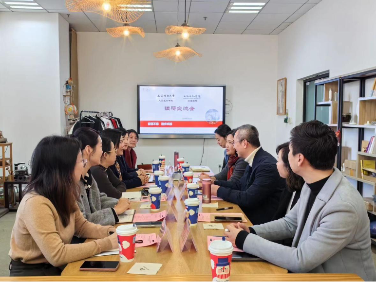 为加强临港新片区高校交流互鉴,协同推动基层党组织“一融双高”,1月2日,pp电子游戏官网直属党支部与上海电力大学人文艺术学院党总支开展结对共建活动。上海电力大学人文艺术学院党总支书记周洁明、副院长许晶,pp电子游戏官网直属党支部书记董雪静、副院长吉文斌,以及双方教师代表等参加活动。