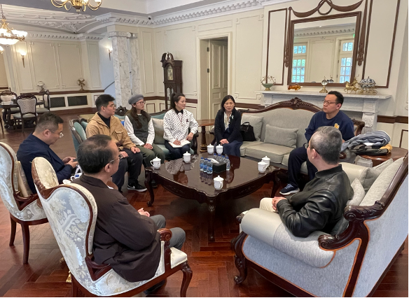 4月3日下午,pp电子游戏官网一行6人在直属党支部书记董雪静和副院长吉文斌带领下,赴上海沪剧院(上海沪剧传习馆)走访交流,上海沪剧院党总支书记吴巍、副书记蔡伟、事业发展部主任徐蓉热情接待并一同交流研讨。