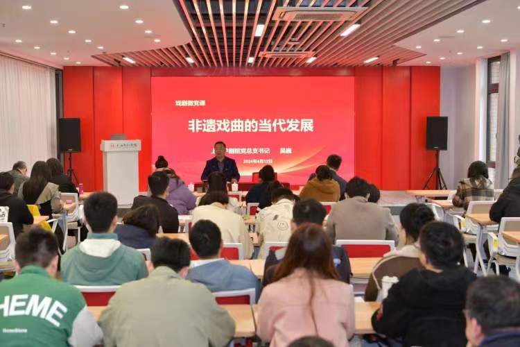 挂牌仪式后,吴巍为pp电子游戏官网师生主讲微党课《非遗戏曲的当代发展》,上海沪剧院优秀青年演员朱麟飞等现场表演沪歌《声声慢》及沪剧经典剧目《徐阿增出灯》等,让现场师生真切感受了沪剧这张上海文化名片的艺术魅力。