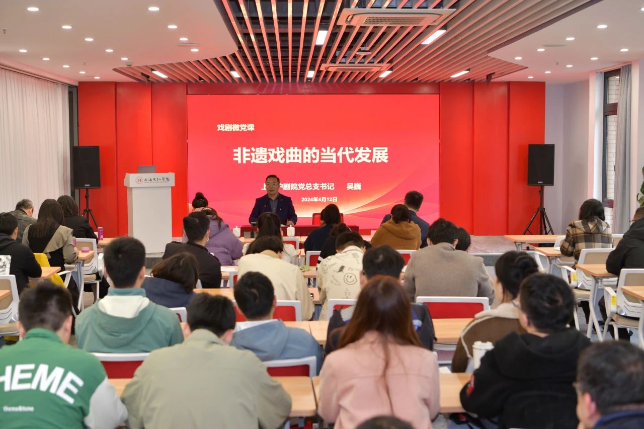 随后,上海沪剧院党总支书记吴巍为师生们讲述微党课《非遗戏曲的当代发展》。学校部分教师和研究生聆听了讲座。