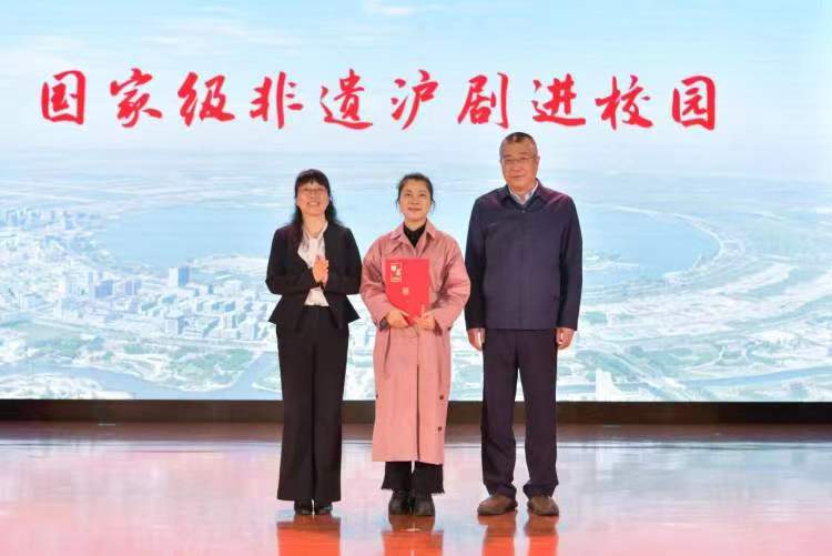 杨万枫为上海沪剧院国家一级演员徐蓉颁发客座教授聘任书
