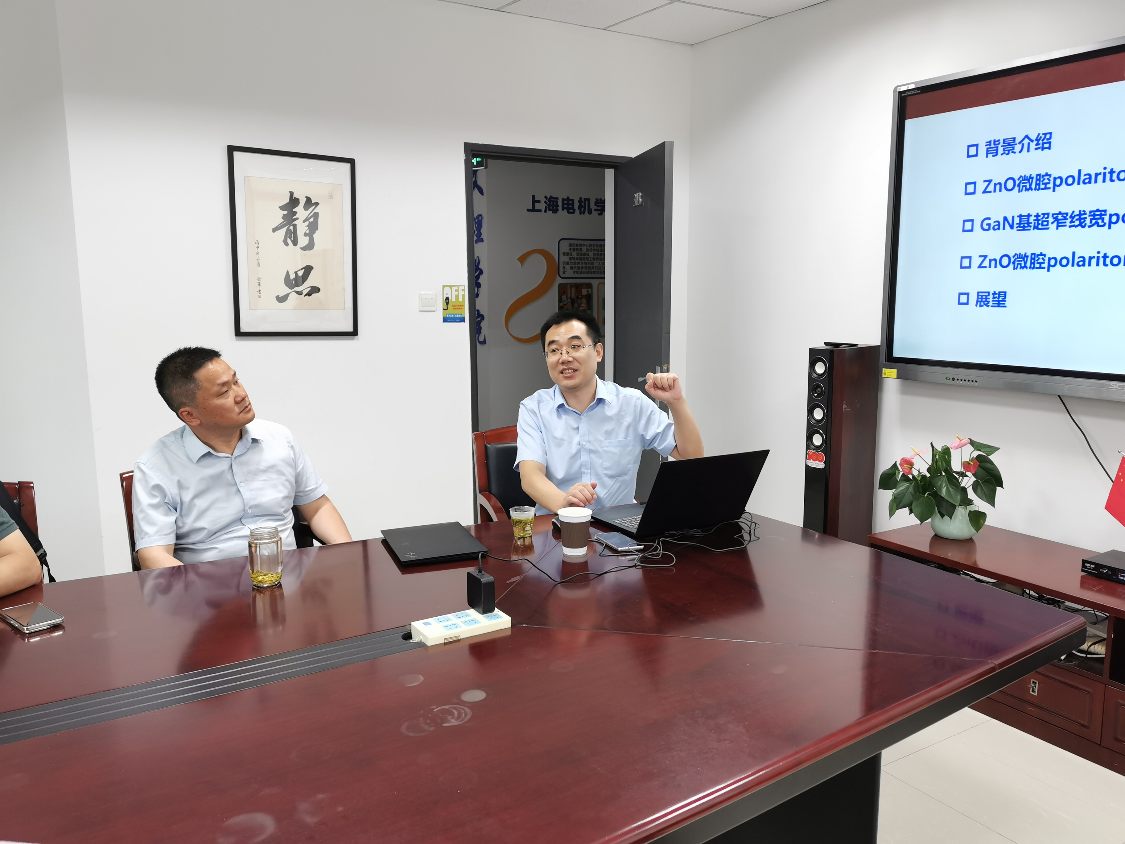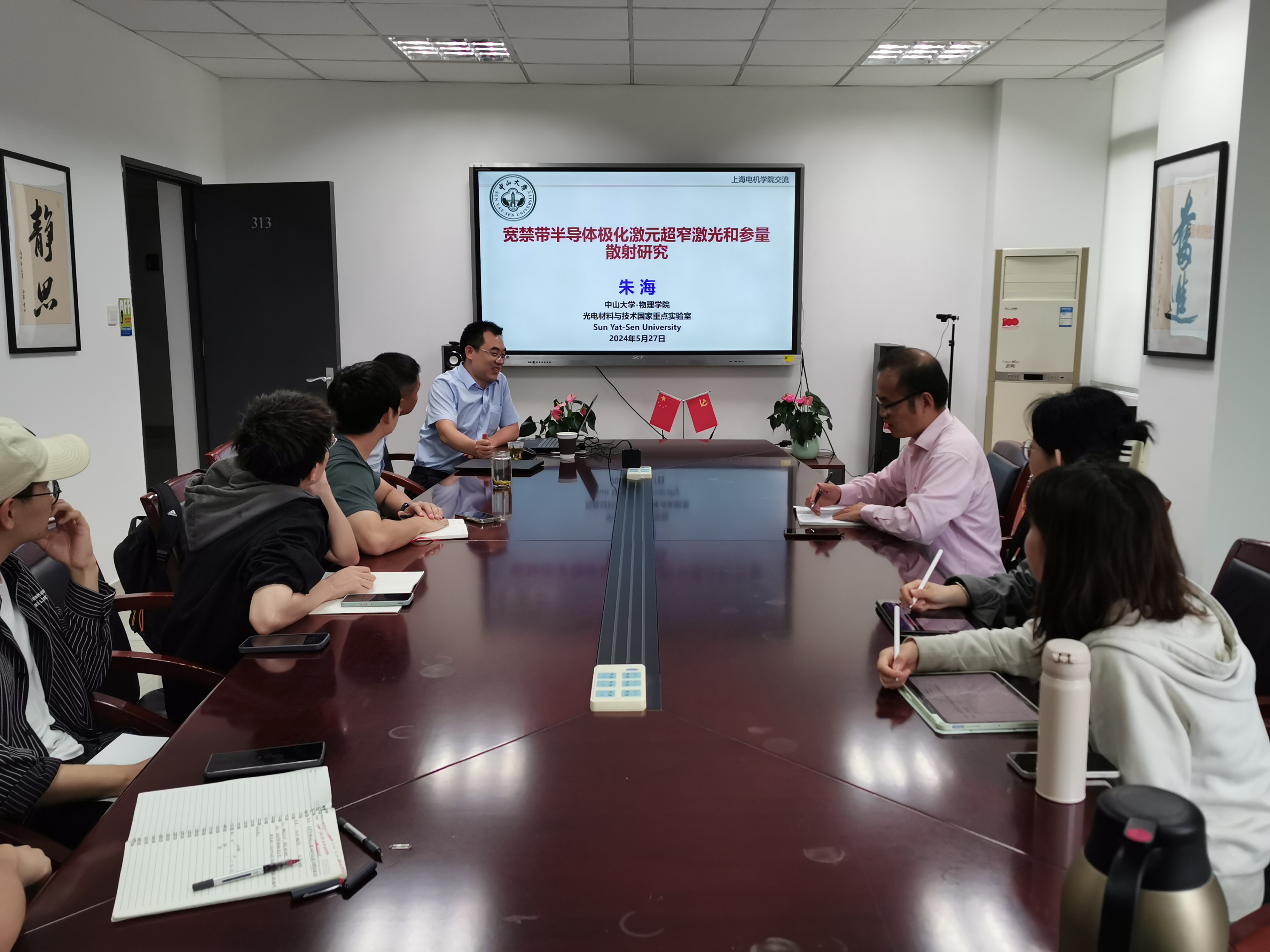 报告中,朱海教授介绍了宽禁带半导体极化激元超窄线宽激光和参量散射形成物理机制和应用,与我校师生深入讨论了相关科学问题,同时,朱教授希望中山大学“光电材料与技术国家重点实验室”能和我校pp电子游戏官网在物理电子学领域开展合作。