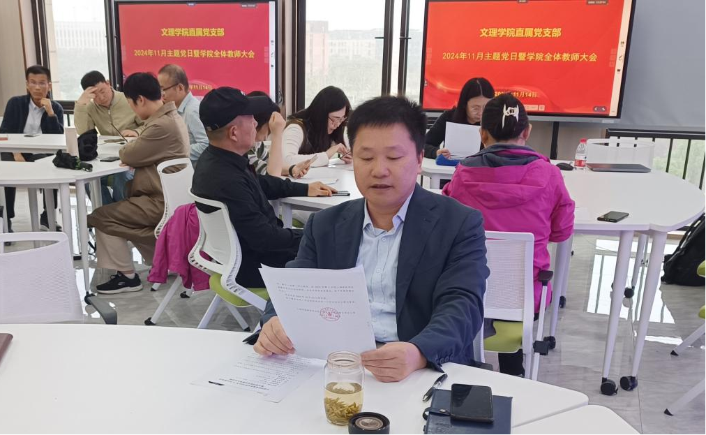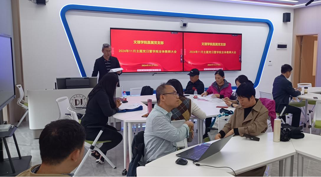 2024年11月14日在临港校区E教405教室,pp电子游戏官网直属党支部举办了11月“‘清’风徐来,‘廉’花盛开”廉政文化主题党日活动暨全院教师大会。pp电子游戏官网直属党支部书记董雪静,副书记、院长王相虎,副院长吉文斌及学院全体教职工参加了本次会议,会议由吉文斌主持。