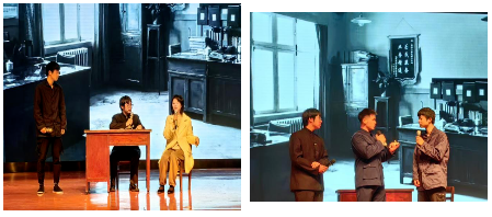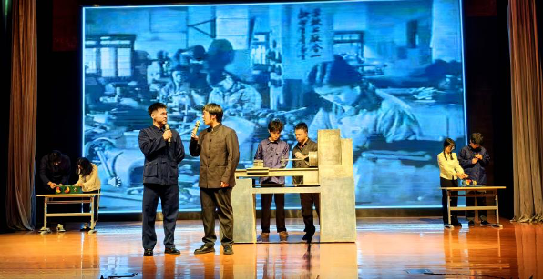 在剧中饰演张培炎的计算机专业 24 级本科生张经纬表示:排练期间与其他演员频繁互动,我更加深入地理解了角色间的关系和特殊时代背景下教育工作者们的使命。在舞台上,当我说出“同意严雪怡教学改革想法”的台词时,心中满是对教育变革的期待与担当。此次参演,我不仅表演能力得到了锻炼,更重要的是深刻领悟到了以严校长为代表的教育者们为了培养符合国家建设需求的人才所付出的努力。他们的坚持与奉献将激励我在学习和工作中秉持同样的热情与责任感,努力学习,为教育事业和祖国发展添砖加瓦。