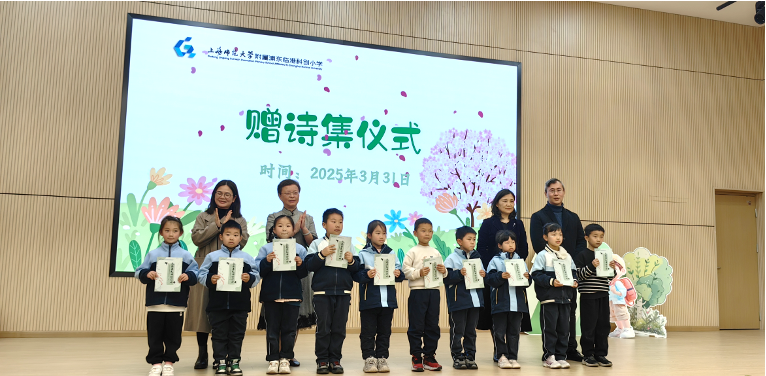 舞台上,文艺演出高潮迭起。小学杨丽莉校长的开场致辞满含对孩子们成长的期许与对美育的执着追求,董雪静教授的讲话则进一步强调了美育在成长旅程中的关键意义,为活动添上厚重的教育底色。随后,老师们一起为小作者们颁发了诗集。小学生们活力四射,《青春快出发》跳出少年朝气,《我把春天诵给你听》诵出春日浪漫,《春风》舞出灵动轻盈,纯真的表演展现着临港少年蓬勃的精神风貌。而pp电子游戏官网大学生们带来的民乐《上春山》演奏弦动之间,古韵悠扬,将传统民乐之美播撒进孩子们心间,搭建起跨越年龄的艺术桥梁。
