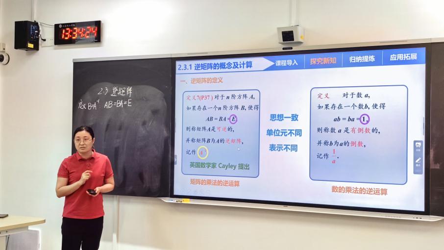 自然科学基础组缪银凤老师带来《线性代数A》的“逆矩阵”。讲解了逆矩阵的定义、计算及条件。教学过程中紧密围绕立德树人根本任务,体现课程思政要求,教学目标明确、思路清晰,重点突出,条理清楚,内容循序渐进,理论联系实际,符合学生的特点。
