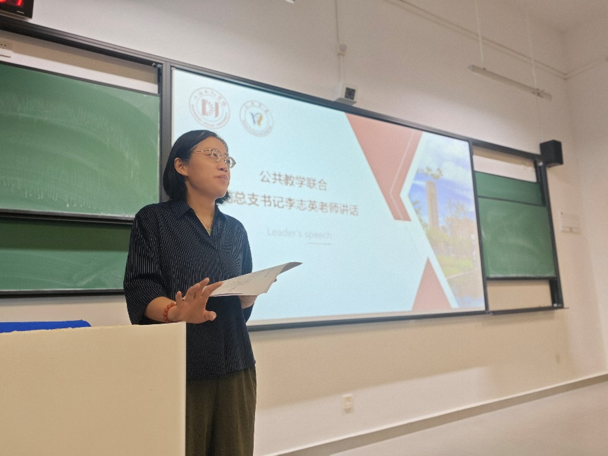 公共教学联合党总支书记李志英老师为开学典礼作总结致辞。 李书记从细微处着眼,寄语新生要从生活小事做起,注重全面发展,培养高尚品德。她语重心长地讲话,饱含了学校与学院对新生们的深切关怀与殷切期盼。
