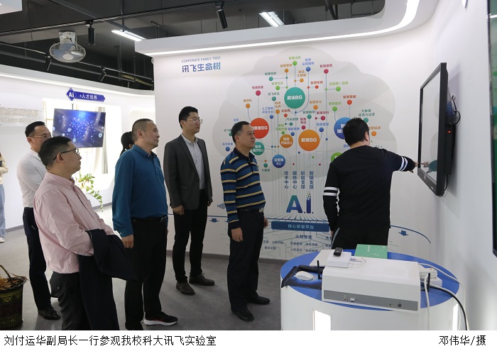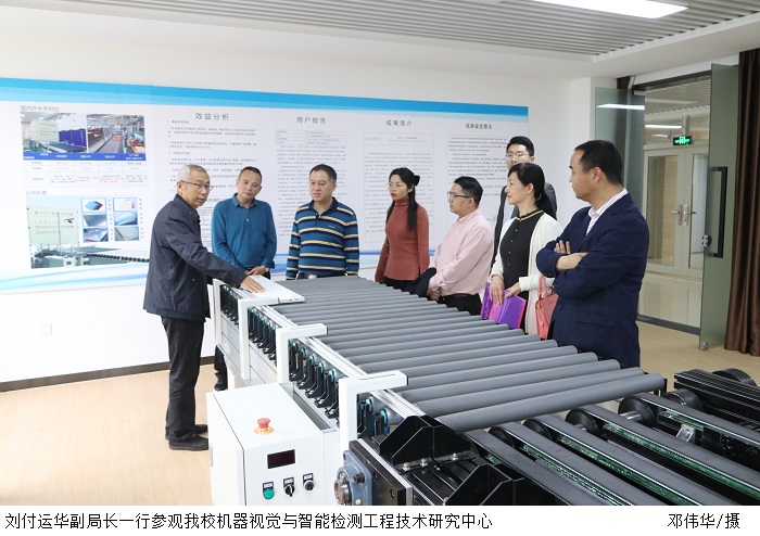 会后,刘付运华副局长一行参观了beat365科大讯飞实验室、尚观实验室、机器视觉与智能检测工程技术研究中心以及大学物理实验中心等地,对beat365校风建设、科研成果大加赞赏。