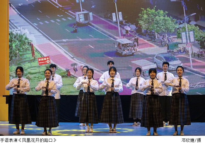 晚会包含大合唱、舞蹈、歌唱、小品等多种形式,异彩纷呈,为观众带来了感官上的享受。大合唱《彩虹》拉开了晚会帷幕,舞蹈《再战旗鼓》,鼓声乍起,自在随性的舞步洋溢着潇洒不羁的青春朝气;舞蹈《大鱼》,舞动的裙摆,唯美的舞姿,将大海深处的故事娓娓道来。19年校园十大歌手冠军刘明宜、20年季军匡小雨演唱的歌曲《生活倒影》,悦耳动听的歌声扣人心弦;小品《愚人劫》,剧情幽默诙谐,精彩的演绎燃爆了全场氛围。歌曲《你要相信这不是最后一天》,歌声情真意切,余音绕梁,仿佛太阳霓虹和云彩,温暖了每个人的内心。舞台剧《回家》,将团聚的欣喜、离别的不舍演绎得淋漓尽致,引起了在场的各位游子的共鸣。街舞表演《Fight》,年轻的节拍诠释澎湃的活力。手语表演《凤凰花开的路口》,带我们走进手语的世界,感受无声的力量。