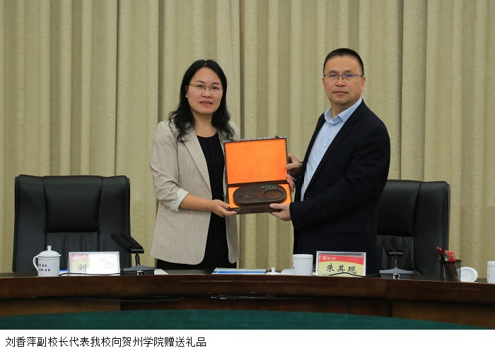 在上午的座谈会上,贺州学院副校长朱其现介绍了该校产教融合、转型发展情况和民族艺术、历史文化传承与创新发展情况。刘香萍副校长表示,贺州学院办学特色鲜明,在人才培养、科学研究和服务地方经济方面成果显著,特别是在产教融合上的先进经验值得我们不断学习,并希望今后能进一步加强两校的交流与合作。