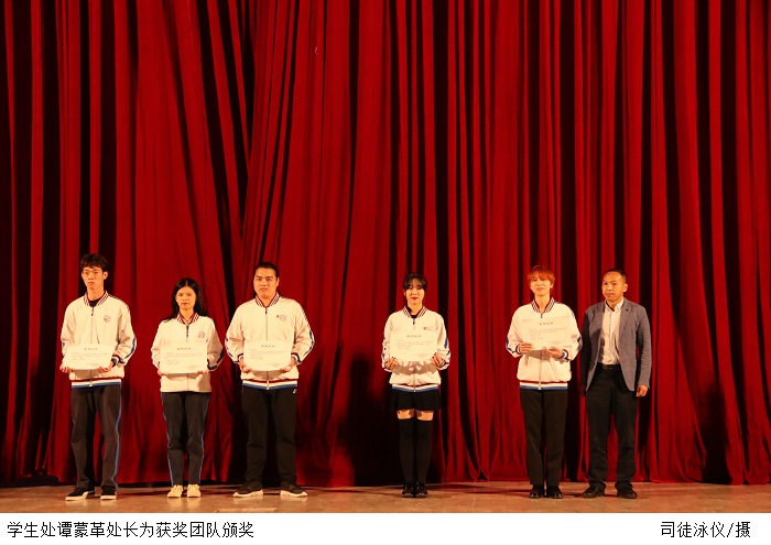 颁奖典礼上,党委副书记张宗珊、学生处处长谭蒙革、党委宣传部部长彭清林、党委组织部部长廖振宇分别为获奖团队颁奖。