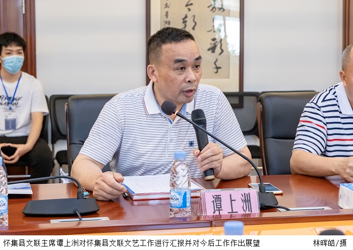 怀集县文联主席谭上洲对怀集县文联文艺工作进行了汇报,并对今后工作作出展望。广东省书法家协会会员孔祥林认为,文艺创作人员应注重“文”“德”“艺”三方面的融合。