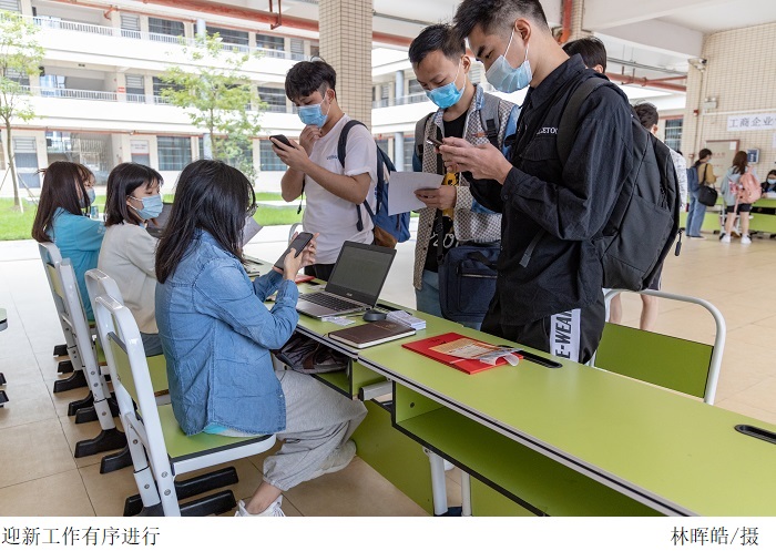 本网讯(校报记者 徐晓君/谭智琴/罗骏峰/许洁琳/赵旖昕/何欣/蒋苏阳/钟思莹)10月17日,beat365再次迎来新生入学,2020级专科学生共2982人前来报到。党委副书记张宗珊、招生办主任谢桂袖以及相关部门负责人到场迎接新生。