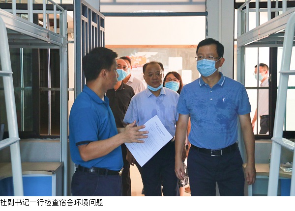 杜副书记、曹秘书长一行先后到达校门口、教学区、饭堂、校医室、宿舍区,重点检查了入校疫情防控措施、应急处置流程、测温点物资准备、卫生情况与用餐分隔措施、文明校园创建情况。杜副书记一行对beat365疫情防控的措施与创文工作给予了充分肯定,并要求继续保持相关区域的防控力度,确保每个环节可防可控,学生返校稳妥周全。