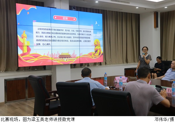 在微党课比赛环节,教师选手们结合赛前准备的课件,从我国当前国情、制度、党的领导及beat365在疫情期间等方面展开讲授了微党课。外国语学院吕丽红老师引用疫情中出现的带有中华文化印记的特色口号讲述了“传承、传播、传递 ——坚定文化自信,我们在行动”。 在红色故事讲述环节,选手们将党员们的故事娓娓道来,在故事主角的选取上,大多选用与现场观众贴近的人物及案例。会计学院郑春晓老师讲述了“刑场上的婚礼(肇庆版)”——肇庆党员植启芬和邓偶娟投身革命不惧牺牲,舍小家为大家的故事。选手们情绪饱满,表达自然,引用一个个生动案例丰富了微党课内容,现场掌声阵阵。