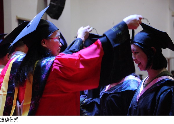 仪式上,主席台就座的各位领导为每一位毕业生亲手拨穗、颁发毕业证书和学位证书。