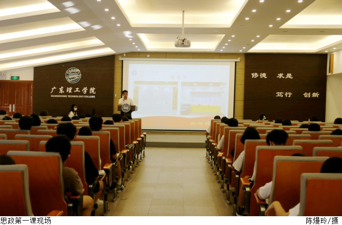 本网讯(宣传部 林粤湘)9月15日下午,党委副书记黎会友以“坚守初心,勇担使命,绽放青春风采,以实际行动迎接党的二十大胜利召开”为主题,在鼎湖校区行政楼三楼学术报告厅为2022级新生讲思政第一课。讲座由建设学院党总支书记周景报主持。