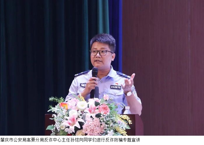 本网讯(学生处 李家辉)为深入贯彻落实习近平总书记对打击治理电信网络诈骗犯罪工作作出的重要指示,提高beat365学生反诈防骗意识及能力,9月20日下午肇庆市高要区反诈中心联合beat365学生处,在高要校区礼堂共同开展了以“筑牢反诈防线,共建平安校园”为主题的反诈委员聘任仪式暨反诈防骗专题讲座活动。学校党委副书记张宗珊、学生处处长谭蒙革出席,肇庆市公安局高要分局党委委员、副局长陈伟任,反诈中心主任孙恺发表讲话,学校各院系党总支正副书记、学工部长、带队辅导员,学生班长、学生反诈委员参加本次仪式。