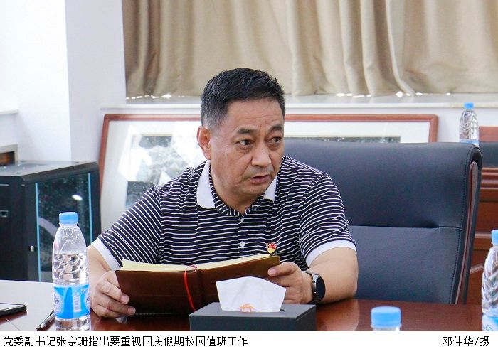 党委副书记张宗珊指出要重视国庆假期校园值班工作,切实维护好校园和谐稳定。