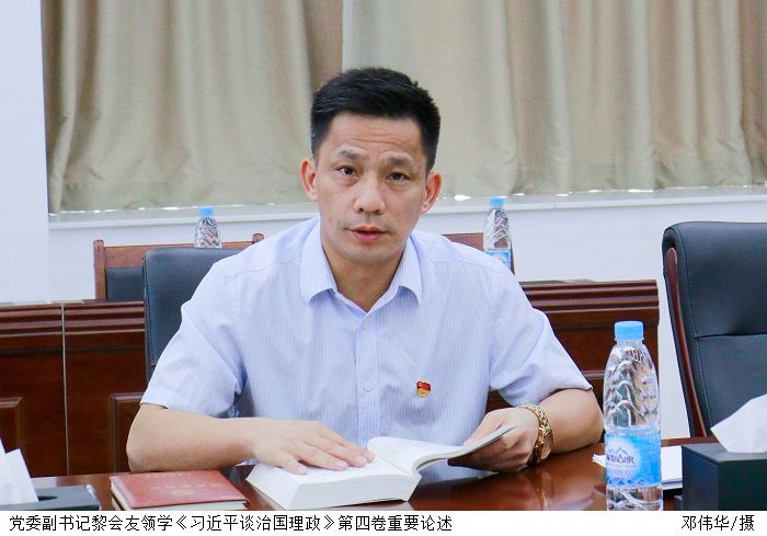 会上,党委副书记黎会友首先领学《习近平谈治国理政》第四卷“依靠斗争赢得未来”重要论述。