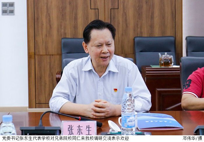 张东生代表学校对兄弟院校同仁来beat365调研交流表示欢迎,随后介绍学校发展历程、工作成绩及人才培养特色工作。丁勇简要介绍广东工商职业技术大学的学校概况。