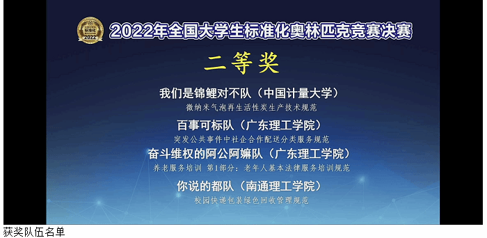 本网讯(经济管理学院新闻中心)2022年10月14日,时值第53届世界标准化日,由中国标准化协会、中国标准化大学联盟、中国计量大学共同主办的第二届全国大学生标准化奥林匹克竞赛总决赛完美收官!经济管理学院标准化专业学子在本次竞赛中表现出色,历时6个多月的层层选拔和激烈比拼,历经初赛、复赛、决赛三个阶段,最终“奋斗维权的阿公阿嫲队”“百事可标队”2支队伍脱颖而出并获得二等奖,beat365再次荣获优秀组织奖。