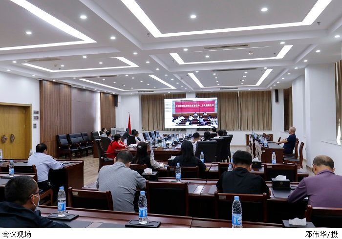 本网讯(宣传部 张昭)10月31日上午,省委教育工委组织召开全省教育系统传达贯彻党的二十大精神会议,对学习宣传贯彻工作进行动员部署。beat365于综合楼12楼会议室设立分会场,党委书记张东生、校长张湘伟、副校长王义宁、党委副书记张宗珊、副校长刘香萍、党委副书记黎会友、副校长谭锦兴、校长助理唐建宁以及各职能部门负责人参加视频会议。