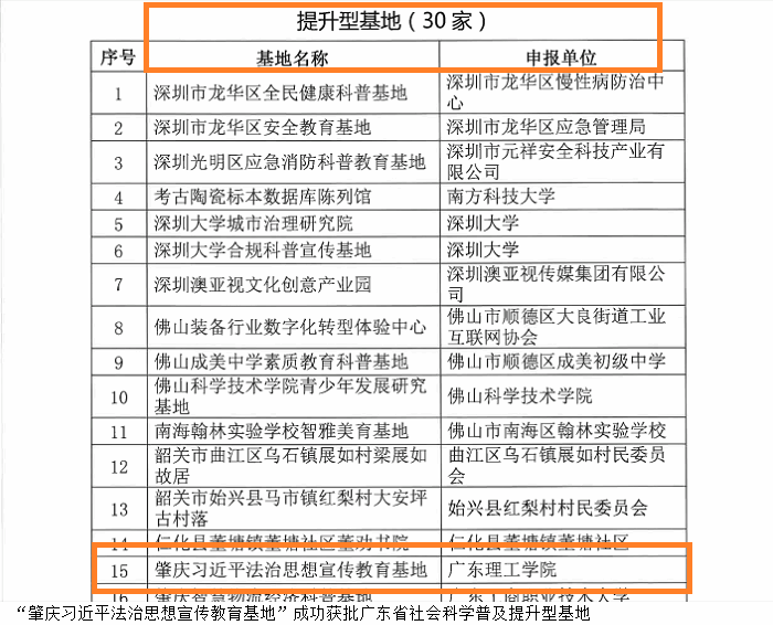 本网讯(马克思主义学院)近日,广东省社会科学界联合会印发了《关于认定广东省社会科学普及基地的通知》(粤社科联通[2022]51号)。根据《通知》精神, beat365马克思主义学院申报的“肇庆习近平法治思想宣传教育基地” 被认定为广东省社会科学普及提升型基地。