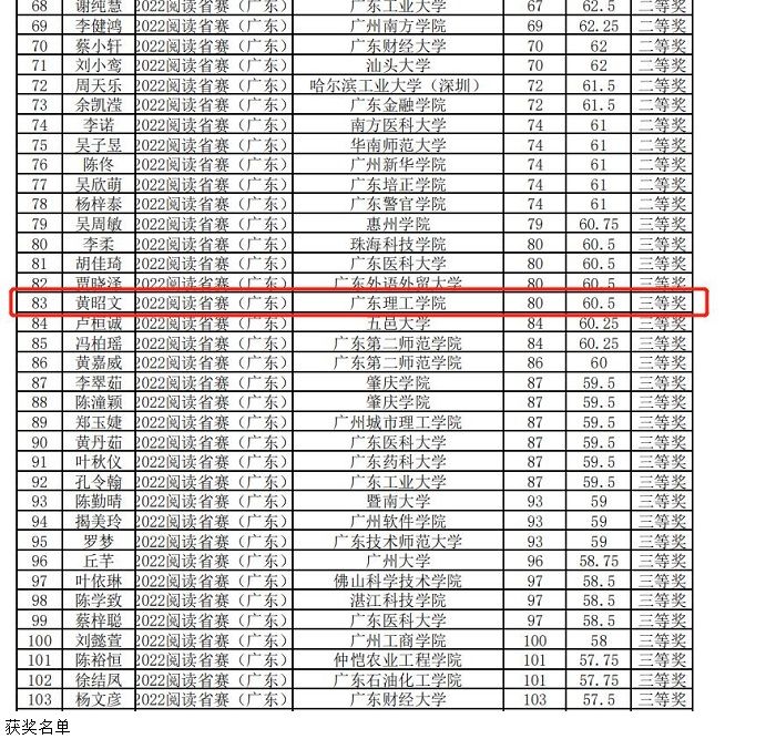 beat3652位专业组选手在阅读大赛(广东赛区决赛)中表现出色,获得可喜成绩。其中,黄佳明同学获得省级一等奖;黄昭文同学获得省级三等奖。慕容玉贞、黄小辉、谢子彬、张智龙四位老师荣获“优秀指导教师”称号。