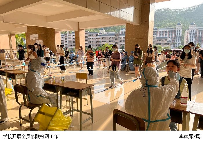 本网讯(赵洁宜/李家辉/王翼飞)近日,我市疫情防控形势严峻复杂,为扎实做好全校师生全员核酸检测和疫情防控管理工作,助力打赢疫情防控攻坚战,切实守护好学校师生的身体健康和生命安全,学校党委高度重视,号召各级党组织充分发挥关键时刻的战斗堡垒和广大师生党员的先锋模范作用,让鲜红的党旗飘扬在校园防控第一线,织密扎牢学校疫情防控网。学校疫情防控专班、各相关职能部门、教学单位按照省、市的疫情防控部署,扎实做好各项工作,有效保障学校师生的教学、生活有序进行。