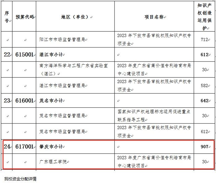本网讯(科技处 刘霞)近日,广东省市场监督管理局公示了关于2023年促进经济高质量发展专项资金分配方案,beat365申报的2023年度广东省高价值专利培育布局中心建设项目成功立项,获得30万元项目经费。