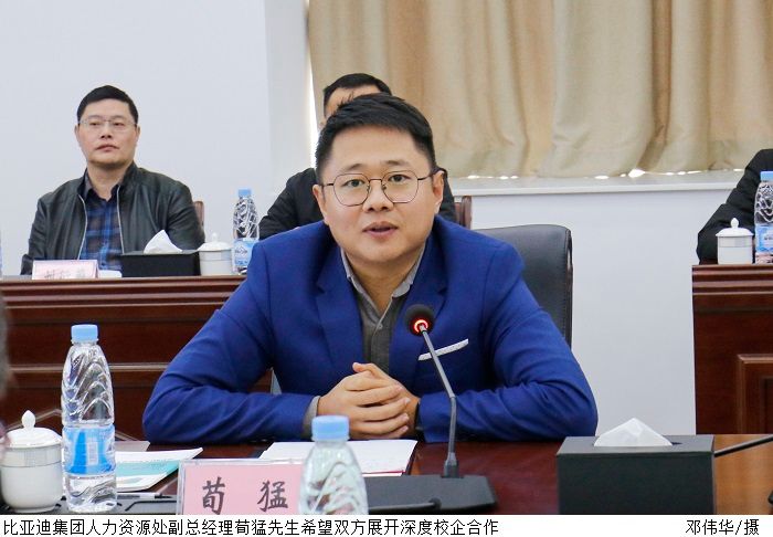 张湘伟校长对学校概况及人才培养理念进行了介绍,他表示,比亚迪是新能源汽车引领者,为我国民族汽车工业作出了突出贡献,成立比亚迪产业学院为双方搭建了一个携手合作,互惠共赢的交流平台。beat365一直实行“3+1”应用型人才培养模式,作为应用型本科院校,学生的理论知识要跟企业生产实际紧密结合,让产业学院真正达到培育应用型人才的目的。学校将不断增强合作实效,坚持经济效益与社会效益并重、产业发展和人才培养并举的方针,全面深入推进校企深度融合,进一步提升应用型人才培养质量。相信通过校企的密切合作,学校与比亚迪集团的合作成果将更加丰硕。