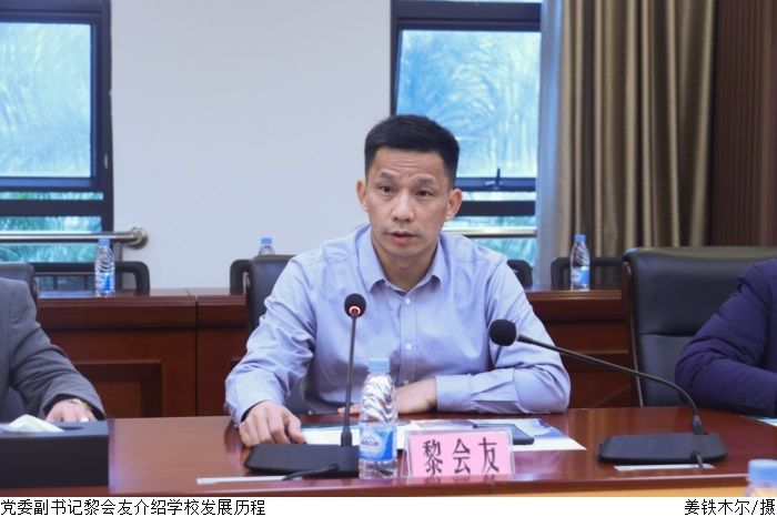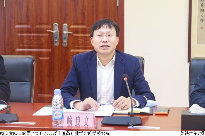 黎会友代表学校对广东云浮中医药职业学院同仁来beat365调研交流表示欢迎,随后介绍学校发展历程、实训室建设及校园文化建设情况。喻良文简要介绍广东云浮中医药职业学院的学校概况。