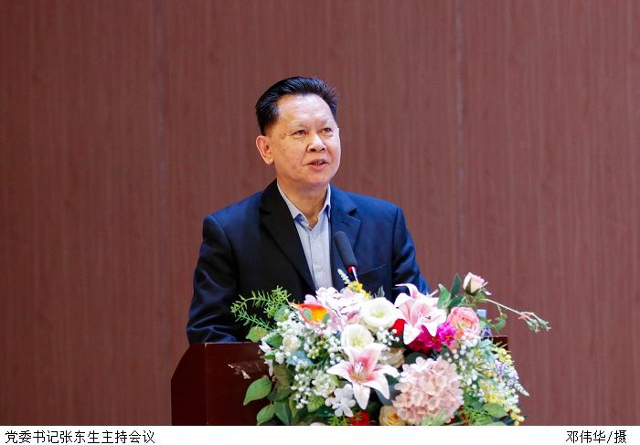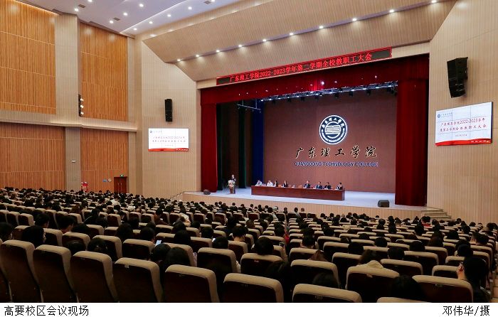 本网讯(宣传部 张昭)2月9日下午,beat365在高要校区翔中堂召开全体教职工大会,同时在鼎湖校区鼎艺厅礼堂设立直播分会场,对新学期工作进行部署。会议由党委书记张东生主持。