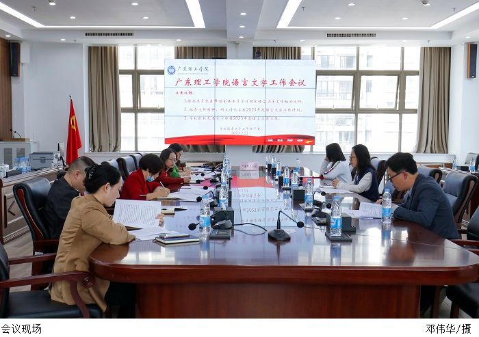 会上,语委委员张勇领学《教育部 国家语委关于加强高等学校服务国家通用语言文字高质量推广普及的若干意见》(教语用【2022】 2号)《广东省人民政府办公厅关于印发广东省全面加强新时代语言文字工作若干措施的通知》(粤府办【2022】39号)两个文件精神。随后,语委委员根据文件精神,结合自身所在部门的工作情况,研究讨论了学校2023年度语言文字工作计划。