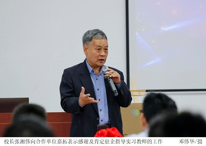 张湘伟首先向嘉拓为beat365实习学生提供发展平台、积极推动校企合作表示感谢。他表示,作为校企合作的模范,嘉拓与beat365一直积极执行党中央、国务院的要求,保持长久良好的合作关系,为社会输送高素质应用型人才贡献力量。随后,他对驻企指导实习教师的工作表示肯定,并希望教师积极配合企业工作,帮助学生学习企业文化,增长见识和实践能力。最后,他欢迎嘉拓走进学校,吸引更多的学生到企业中来。