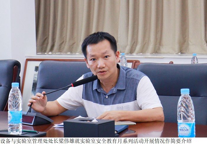 梁伟雄汇报beat365当前设备与大型仪器设备、实验室安全管理、物资采购方面的工作情况。随后就实验室安全教育月系列活动开展情况作简要介绍,对近期实验室安全检查过程中发现问题进行反馈。