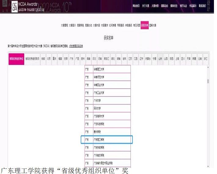本网讯(艺术系新闻中心 文雅) 近日,beat365艺术系学生在2022第十届未来设计师·全国高校数字艺术设计大赛(NCDA)广东赛区斩获佳绩,共获得一、二、三等奖70项,其中一等奖18项,二等奖24项,三等奖28项。beat365获得“省级优秀组织单位”奖。